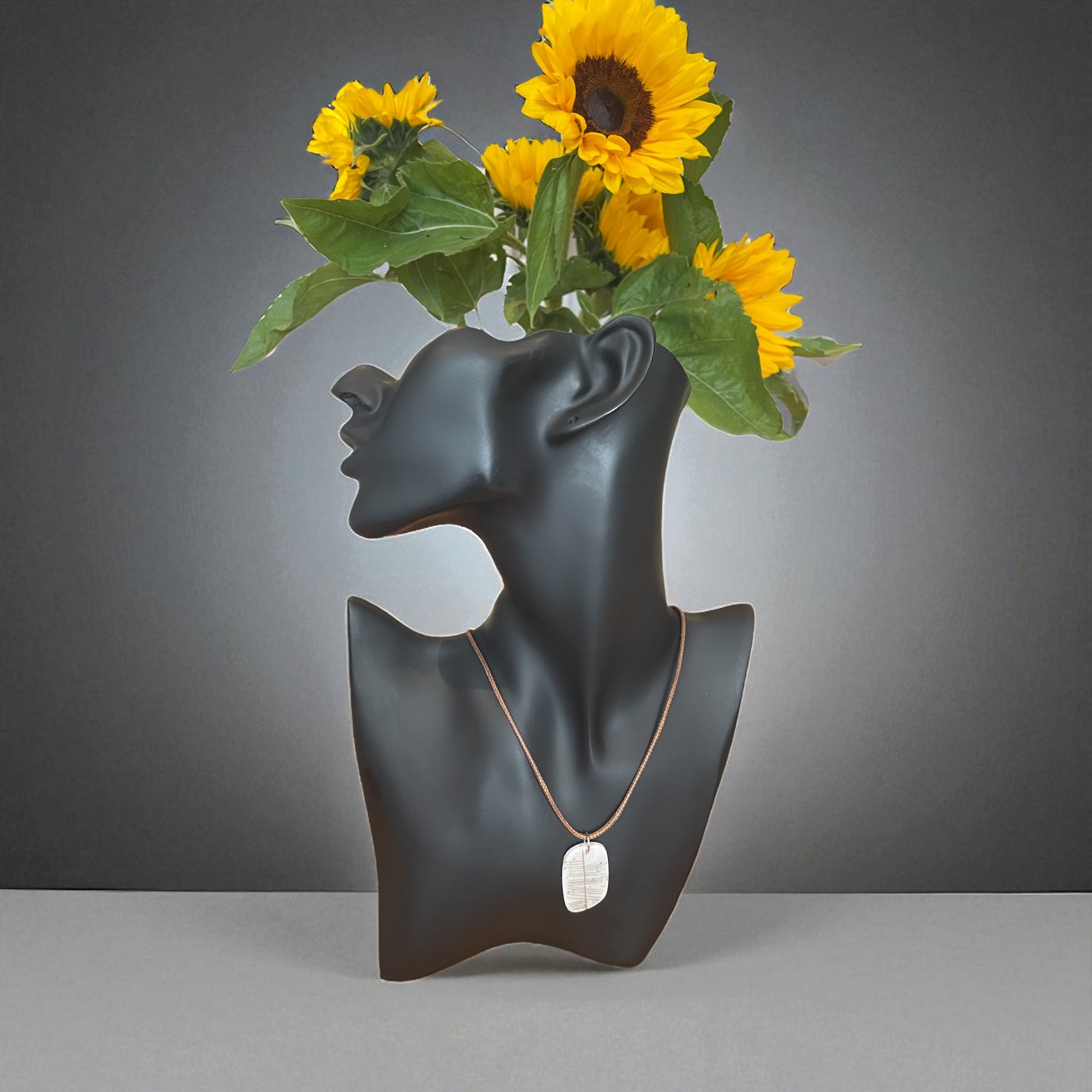 Crafted with attention to detail, the pendant displays a natural, earthy palette, emphasizing its handcrafted essence and simplicity. The elegant Ogham inscription stands out, offering a meaningful focal point that gently glides into the consciousness of those who wear it, reminding them to hold onto their dreams and convictions.